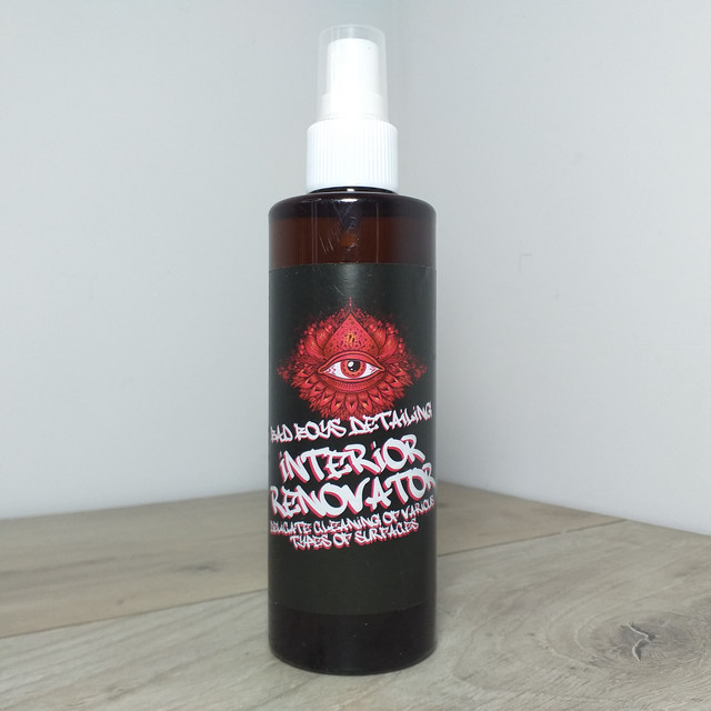 Bad boys Interior renovator — ідеальний продукт для чищення сидінь вашого автомобіля. Він ефективно видаляє всі типи плям з оббивки всього за одне застосування, залишаючи сидіння як нові. Очищає й дезінфікує всі типи текстильної оббивки в автомобілі, включно з алькантаром.